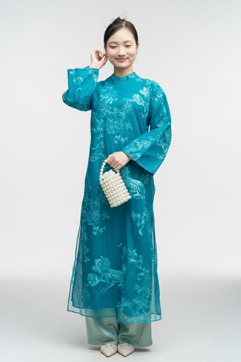 áo dài kỳ lân xanh